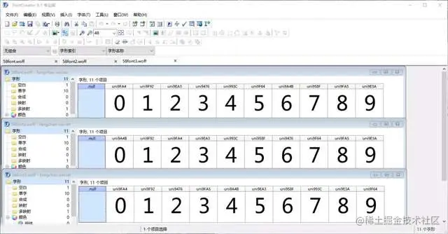 得到字体文件后,我们可以通过 FontCreator 这个软件来看看字体对应的编码是什么: