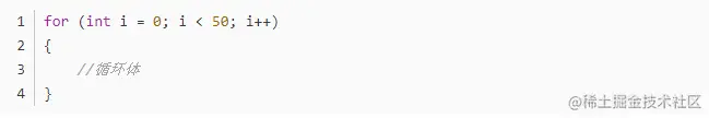 2.执行完第一个参数里的代码后,会执行第二个参数,判断i是否小于50;