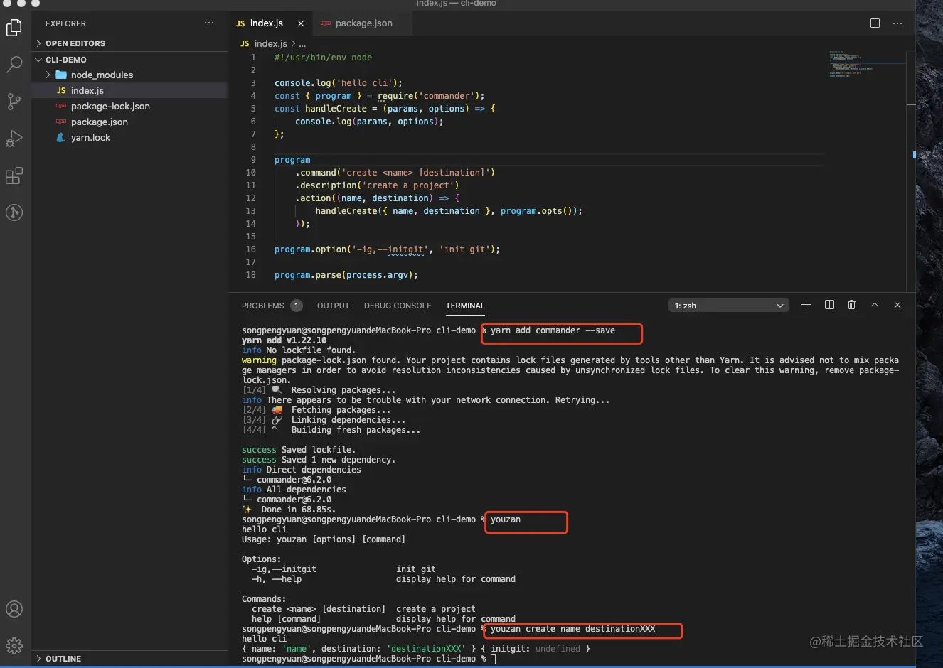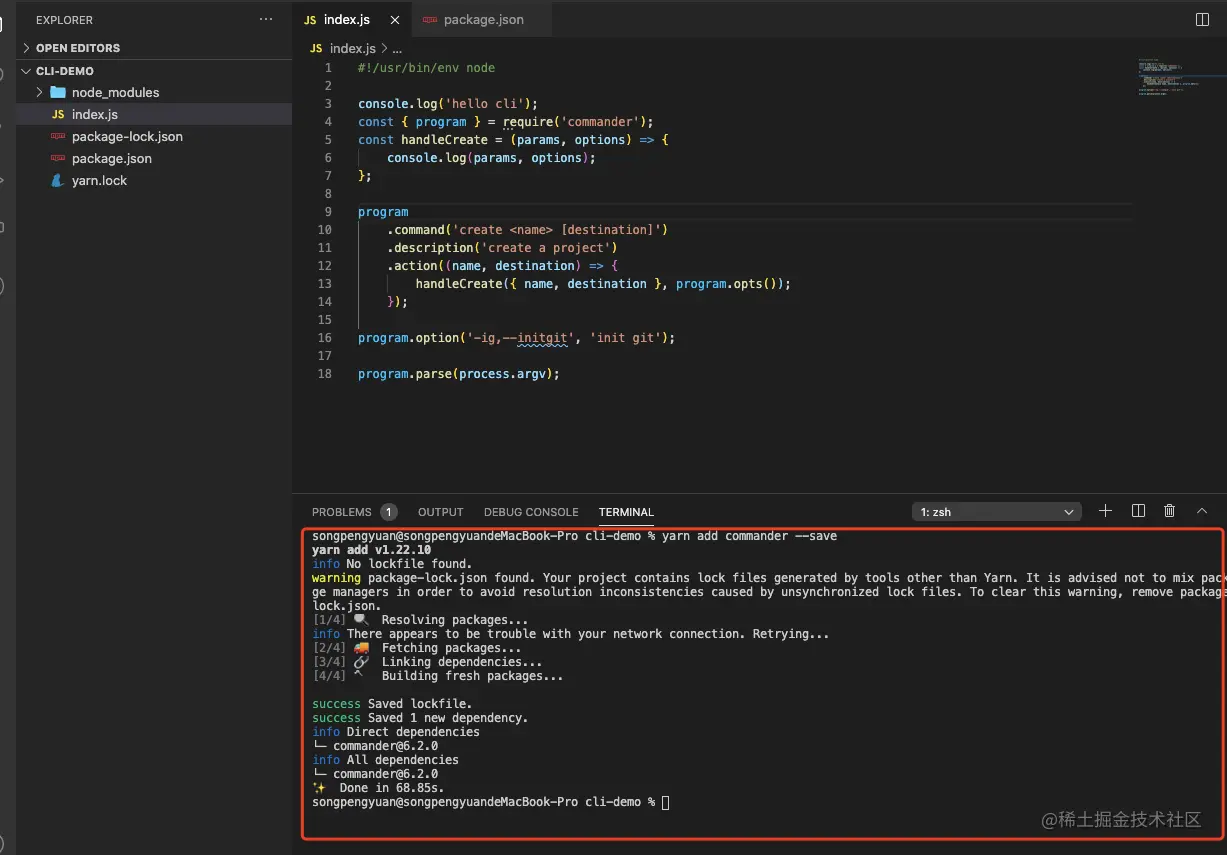 就像vue create一样,我们要完成一个创建项目的命令,并且可以配置模版,以及是否初始化 git