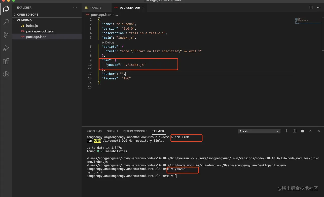 然后再命令行中回答一些项目相关的问题,最终根据问题的答案来生成相应的项目文件。所以,我们要构建自己的 CLI,就是自定义这些操作,来帮助完成一些工作,比如生成项目,代码检查。