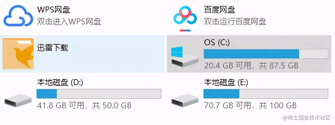 在释放C盘的过程中,我发现一个问题:我们下载的软件虽然改变了他们的安装路径,没有安装在C盘中,但系统默认数据缓存还是在C盘,我们常用的浏览器也是。所以我在一个个软件设置中改变了他们的缓存路径,部分缓存数据会跟着转移。以后下载新软件的时候一定要看!