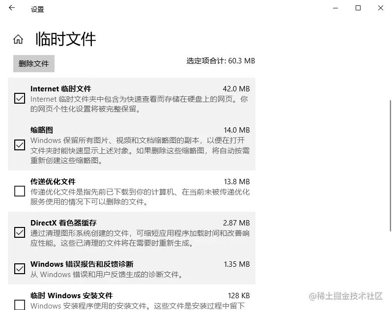 一般我们选择临时文件进行清理,我的文件主要是Windows更新处理占用的内存大。如果你的Windows更新处理内存占用比较大,可以放心删除,不会对运行应用有影响。