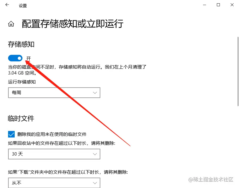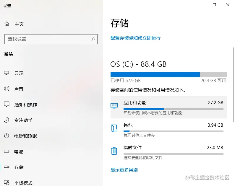 鼠标点击存储设置,打开存储感知,就可以看到你的C盘的使用情况以及占用空间。