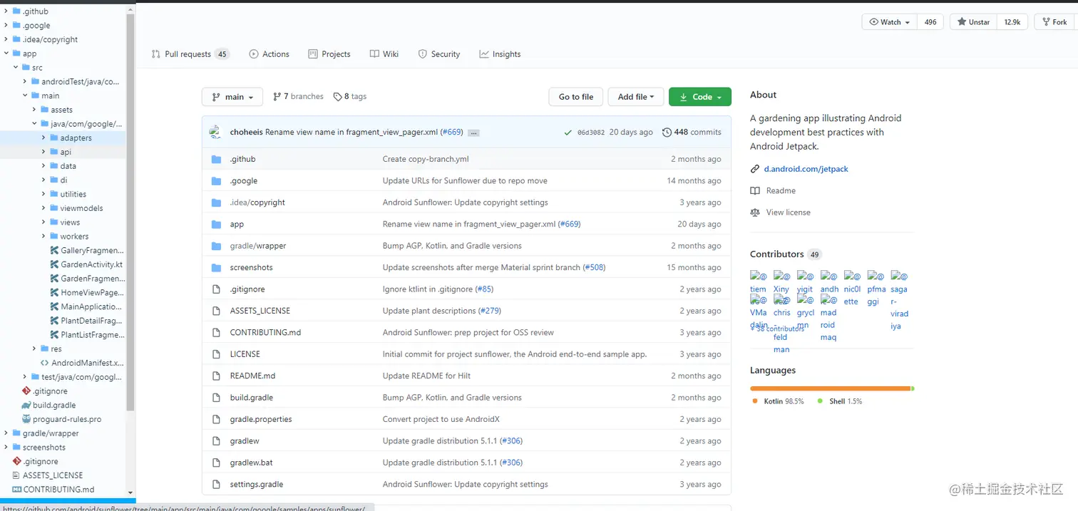 比如我们这边想要学习Android 推出的Jetpack示例sunflower