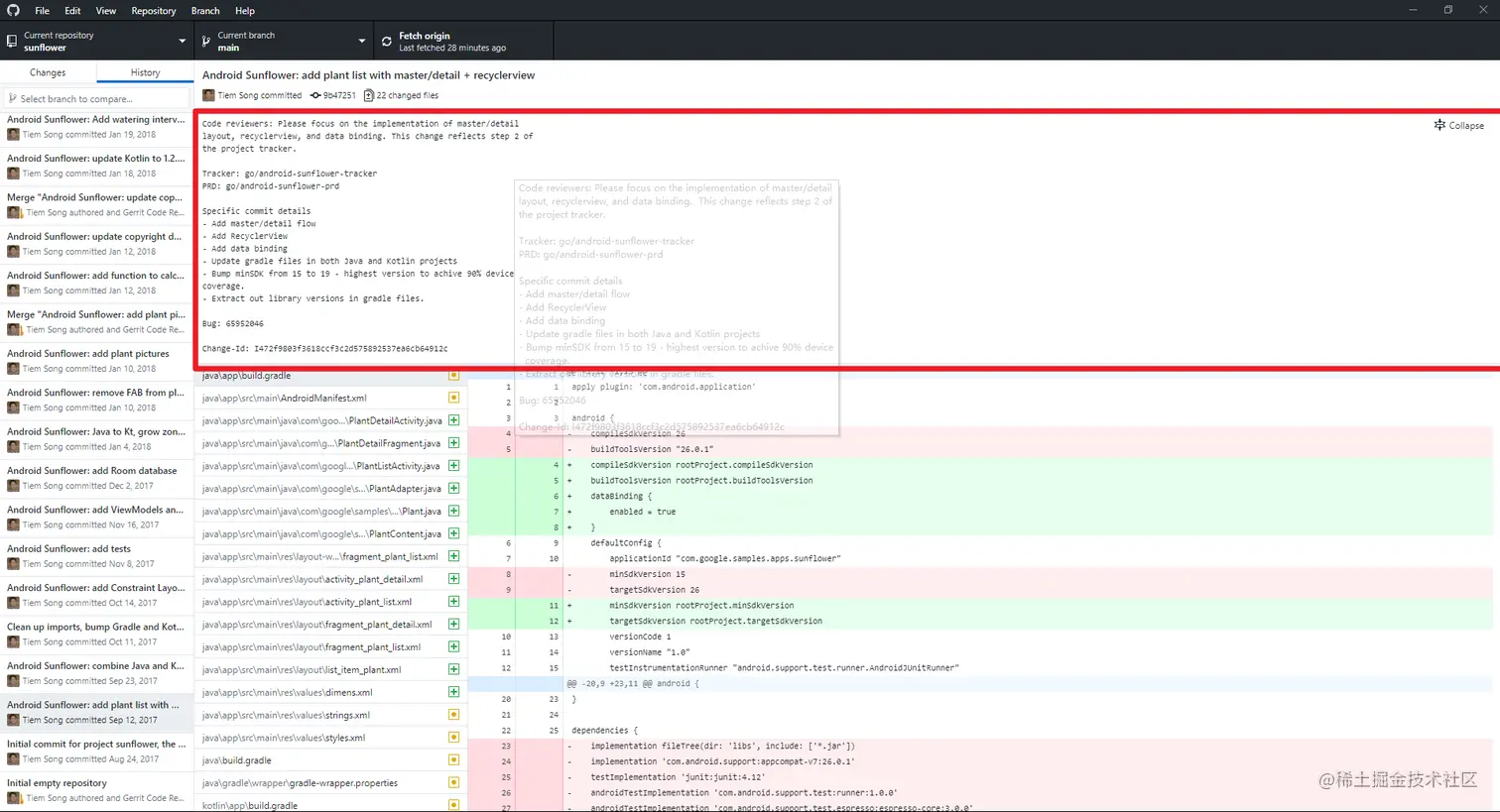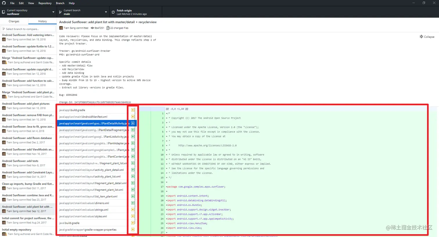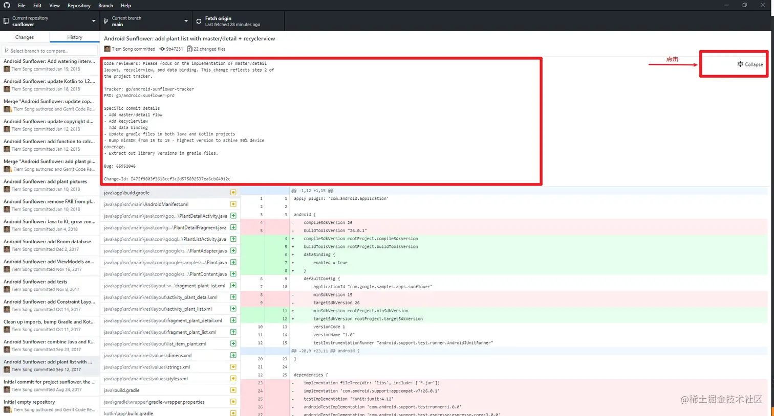 在修改的文件里面,我们可以更好的观察到代码的变化 这样,是不是觉得开源项目一步一步的也能啃的下来了呢