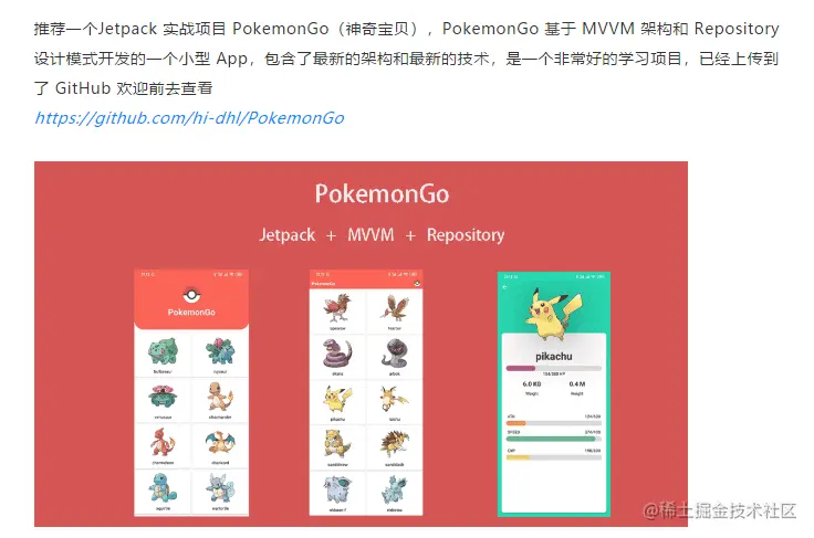 Jetpack实战:神奇宝贝 github.com/hi-dhl/Poke…