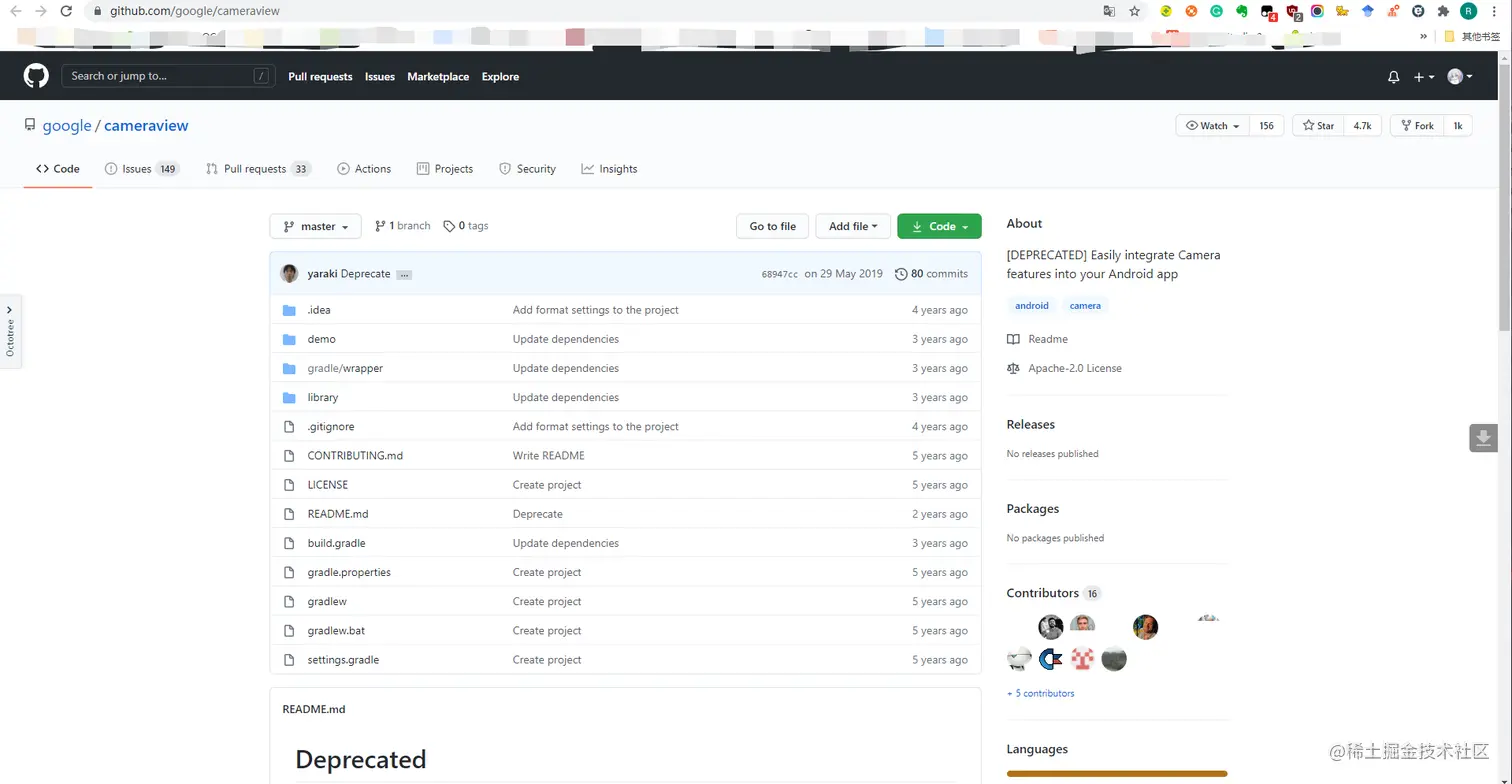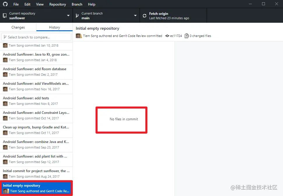 我们还可以切换分支。查看其他分支的情况。对于开源项目的学习。建议在主分支上啦。我们通过history,拉到最下面