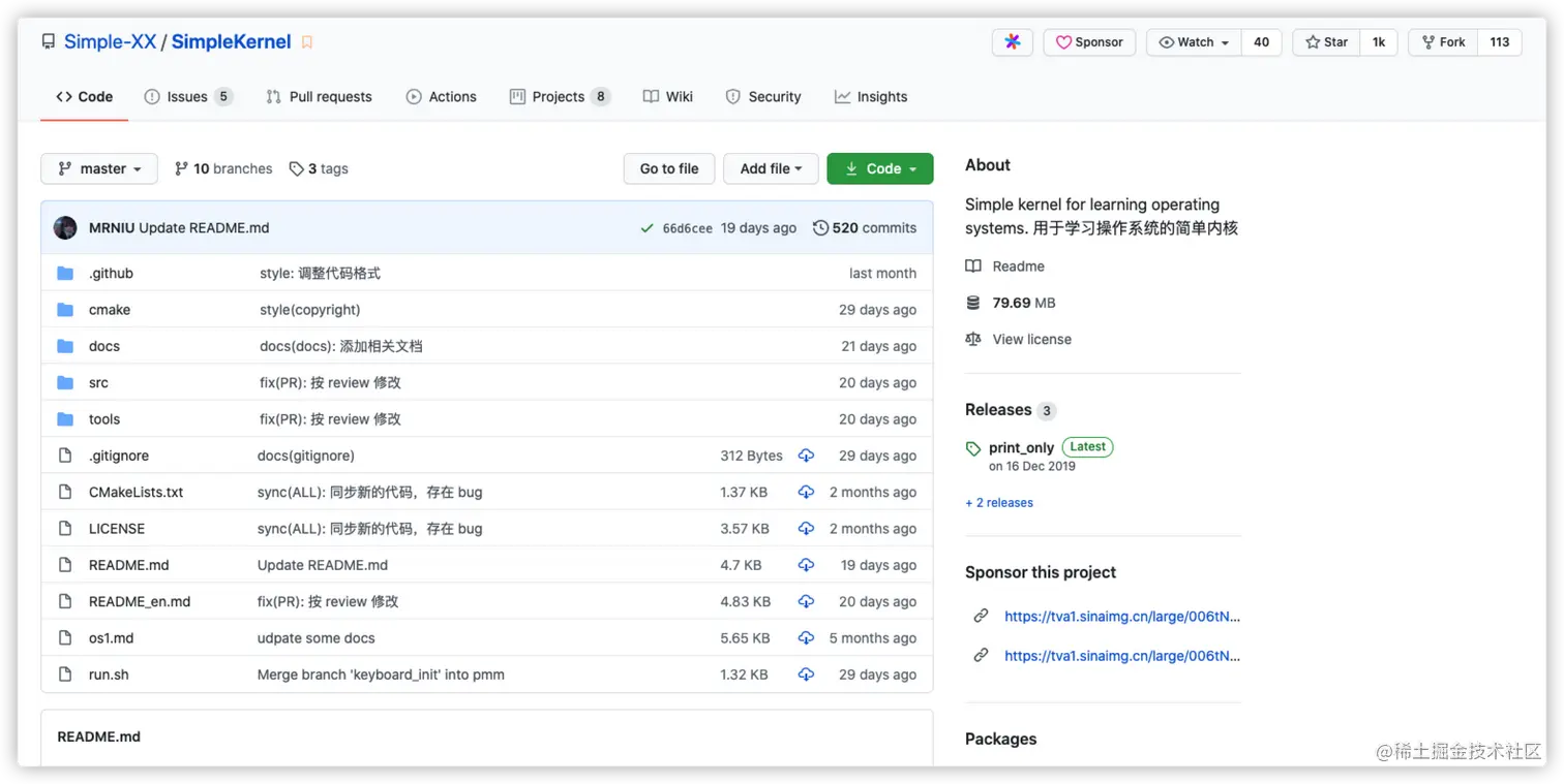 文章内容可能比较少,只是简单分享一下一位学弟写的操作系统内核,希望对自己想写操作系统内核的小伙伴能有所帮助! Github掘金计划历史文章汇总:www.yuque.com/docs/share/…