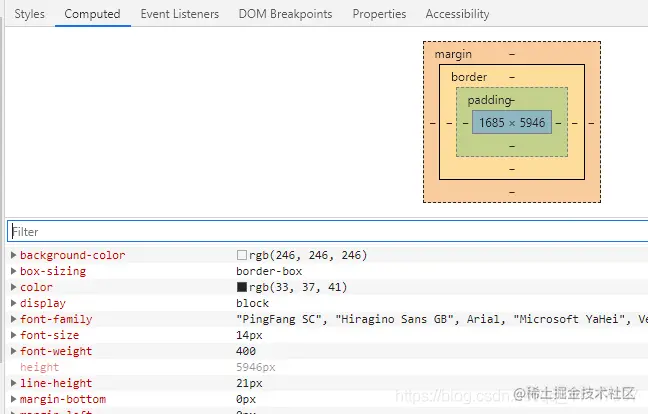 计算 DOM 树每个节点的具体样式 最终的样式可以通过控制台element的Computed查看,关于是怎么计算,涉及继承规则和层叠规则,这里就不细讲了。