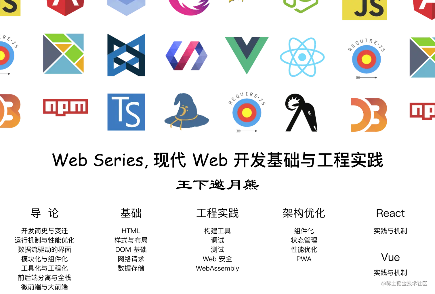HG #vol.028 Web-Series 是小鱼干很喜欢的一名前阿里工程师:王下邀月熊编写的 Web 全栈开发、工程架构与性能调优。在你熟悉前端基础概念,制作简单的例如吃豆人游戏之后,是时候在上一层楼了解下进阶的性能调优、工程架构问题。作为一名十多年开发经验的前端工程师,在 Web-Series 系列,王下邀月熊致力于探索,如何有效地提升团队的研发效能,在整个产品迭代的生命周期中都能及时、可靠地完成交付;同时能够控制住系统整体的复杂性,并且不断地、持续地进行系统的性能与体验优化。可以说升职加薪就差这招 [手动狗头]
