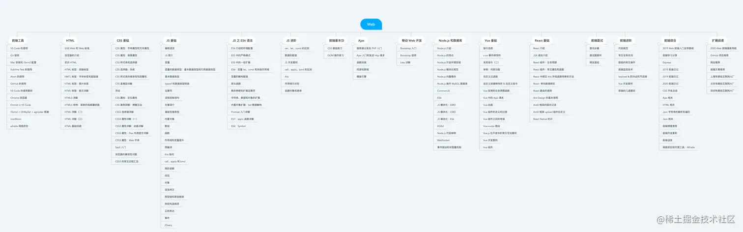 由于作者没有对分类内容及分类下内容做脑图介绍,所以这里小鱼干绘制了它的脑图/目录结构,部分相同主题内容进行了折叠。