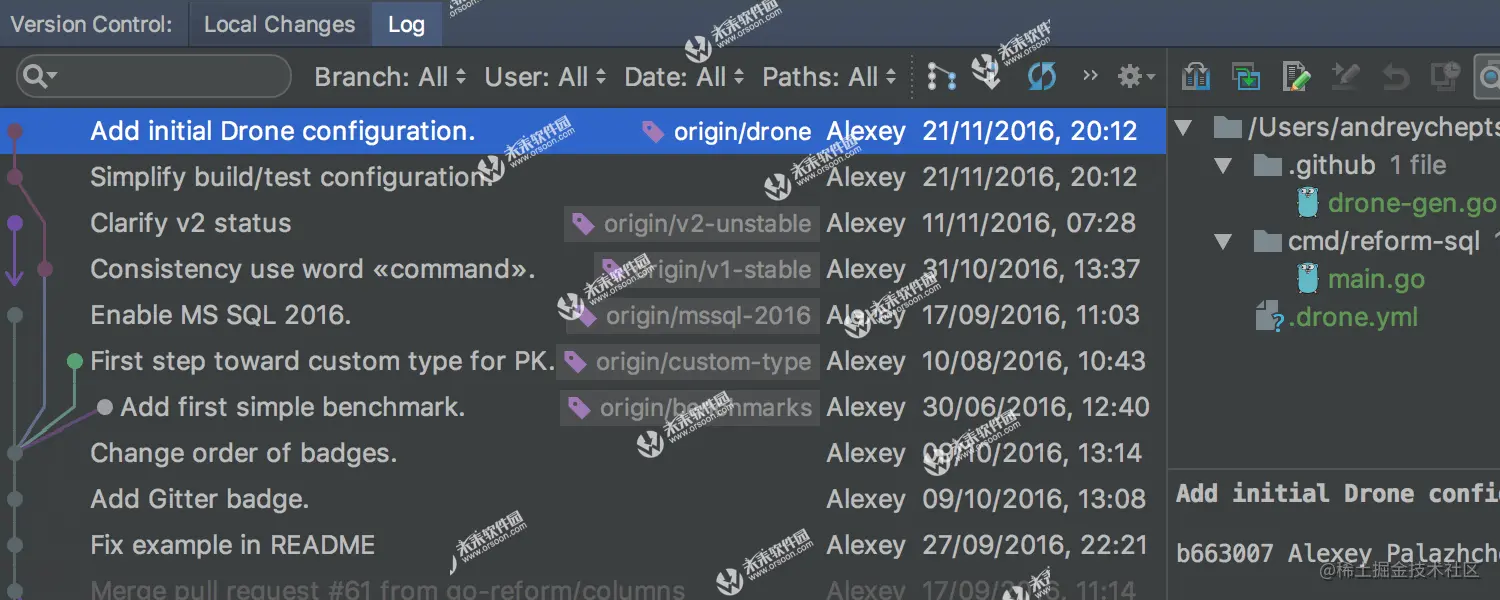 内置的Git集成使您可以浏览更改历史记录,管理分支,合并冲突等等。对于其他版本控制系统,可通过相应的插件获得类似的功能:Mercurial,SVN等。