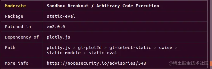 npm audit 为开发人员提供了有关漏洞以及是否有要修复的版本的信息。 例如,