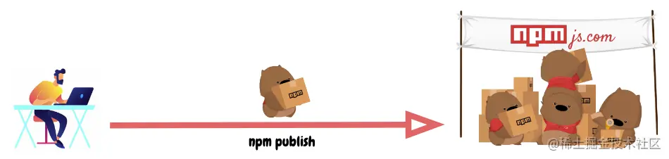为了获得更直观的解释,我们可以将存储库 npmjs.com 视为一个物流集散中心,该中心从卖方(npm 包裹的作者)那里接收货物的包裹,并将这些货物分发给买方(npm 包裹的用户)。