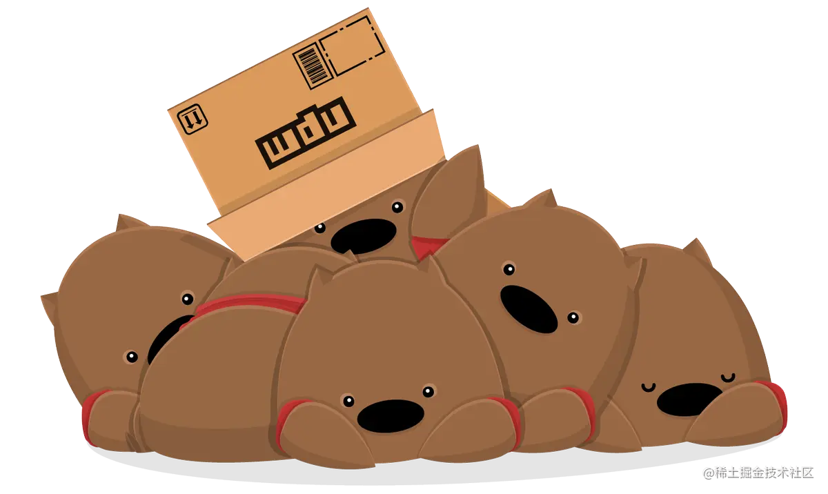 为了促进此过程,npmjs.com 物流集散中心雇用了一群勤劳的袋熊(npm CLI),他们将被分配给每个 npmjs.com 用户作为私人助理。 因此,dependencies(依赖项)会如下传递给 JavaScript 开发人员: