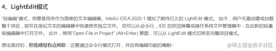 还记得LightEdit模式吗?它是在2020.1版本(2020-04发布)引进的新功能:
