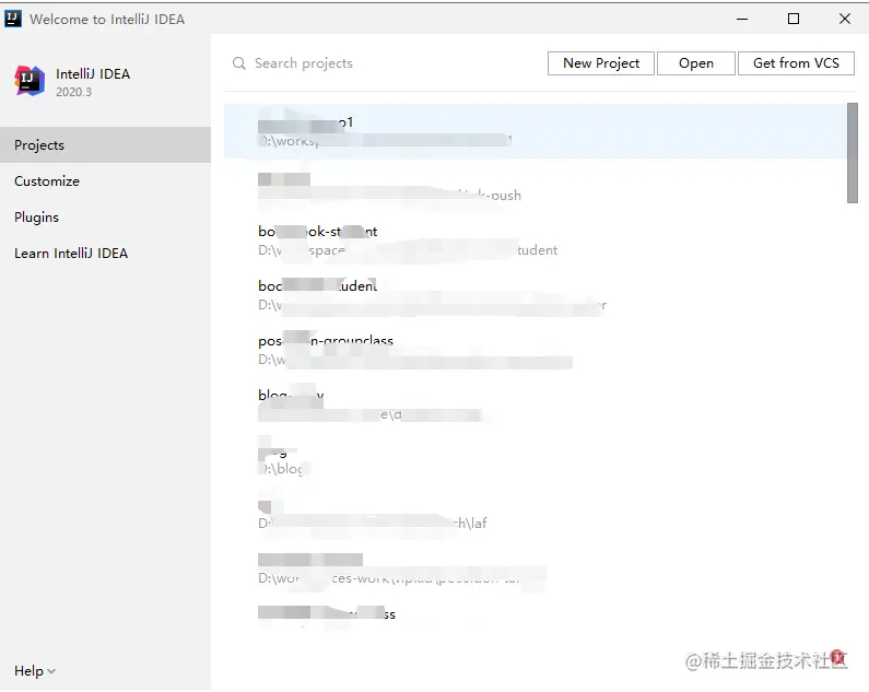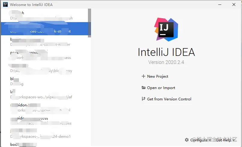 这个不得不夸:进步了,更大气更方便了。此次IntelliJ IDEA欢迎屏幕经过重新设计,初始向导已替换为包含四个标签快速进入: