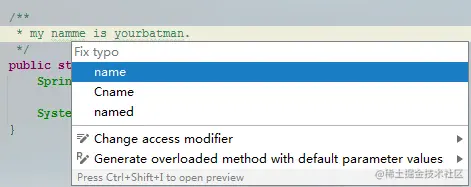 看起来挺智能,实际然并卵,毕竟咱们方法名起个都费劲,还用应为写注释?拼写检查可作用在doc注释上、字符串上。但不可检查变量名、方法名上~
