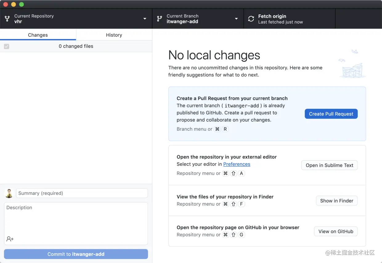 在摘要栏里填写信息后,点击「Commit to itwanger-add」。