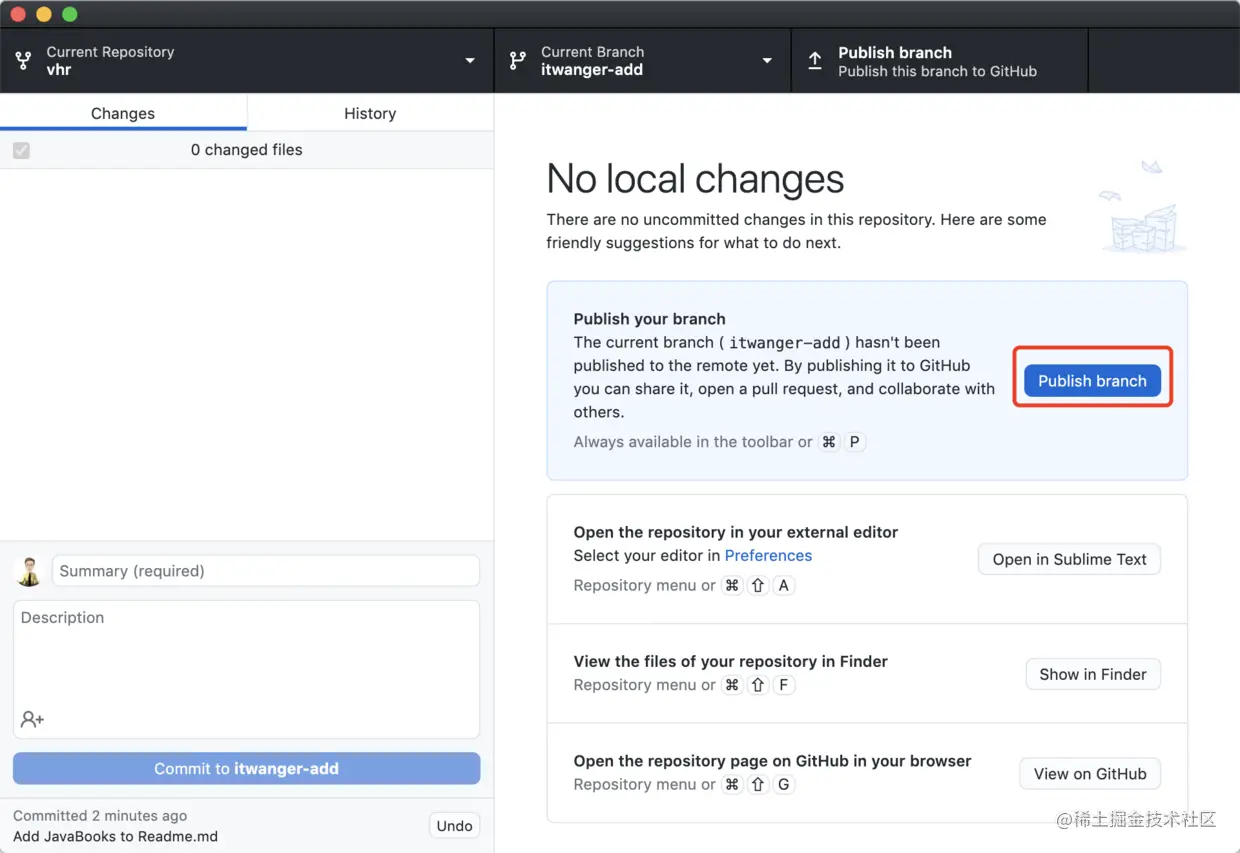 点击「Publish branch」发布分支。