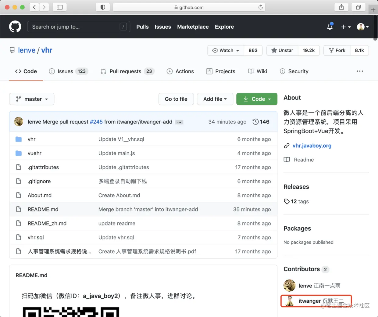 从此以后,我是不是也可以出去吹牛逼了,沉默王二,GitHub 上标星 19.2k 项目的贡献者。额,这种感觉真不错,有种黄袍加身的感觉,不不不,有种荣誉加身的感觉!