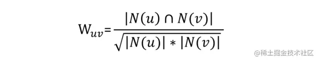 其中,N(u) 表示喜欢物品 u 的用户数,N(v) 表示喜欢物品 v 的用户数,两者的交集表示同时喜欢物品 u 和物品 v 的用户数。很显然,如果两个物品同时被很多人喜欢,那么这两个物品越相似。