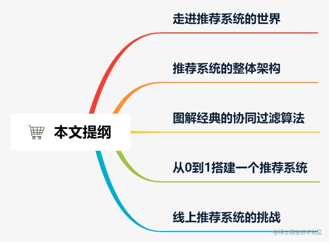 这篇文章属于推荐系统的入门篇,本文暂不考虑线上环境的海量数据,目的是先了解清楚推荐系统的基本构成,我会通过图解推荐算法以及程序demo的形式展开,内容包括: