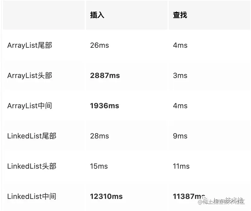 LinkedList 在头尾查找、插入性能都是很棒的,但是在中间位置进行操作的话,性能就差很远了,而且跟 ArrayList 完全不是一个量级的。
