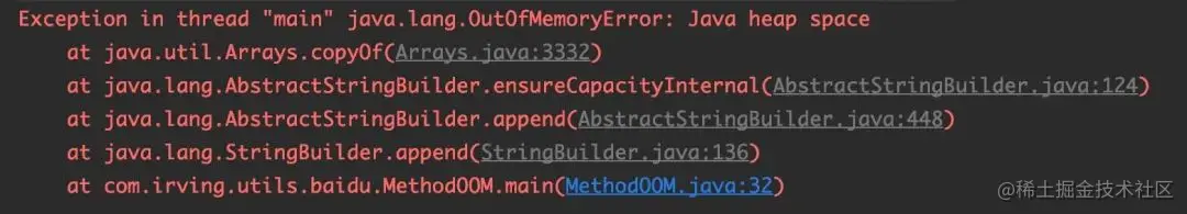 而在1.7版本之后,字符串常量池已经转移到堆区,所以会报出堆内存溢出的错误,如果1.7之前版本的话会看见PermGen space的报错。