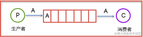 Queue(队列)RabbitMQ的作用是存储消息,队列的特性是先进先出。上图可以清晰地看到Client A和Client B是生产者,生产者生产消息最终被送到RabbitMQ的内部对象Queue中去,而消费者则是从Queue队列中取出数据。可以简化成表示为: