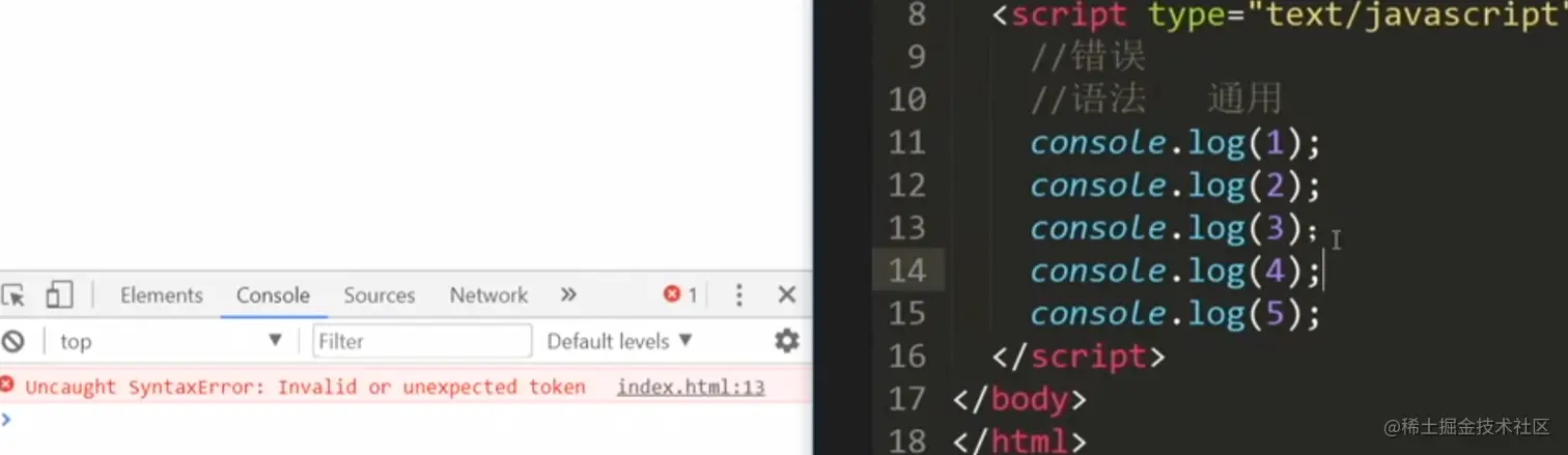 console.log(3)后面的分号是中文输入法的,导致产生SyntaxError,此时,所有语句都不会执行