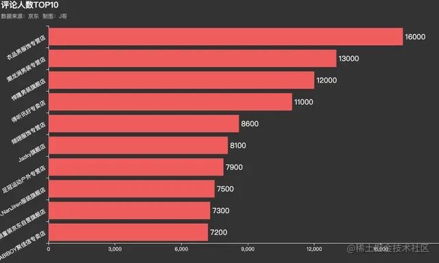.set_global_opts(title_opts=opts.TitleOpts(title="评论人数TOP10",subtitle="数据来源:京东 \t制图:J哥",pos_left = 'left'),