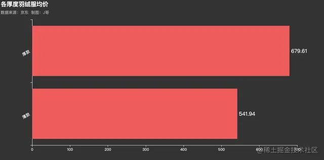.set_global_opts(title_opts=opts.TitleOpts(title="各厚度羽绒服均价",subtitle="数据来源:京东 \t制图:J哥",pos_left = 'left'),