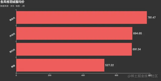 .set_global_opts(title_opts=opts.TitleOpts(title="各风格羽绒服均价",subtitle="数据来源:京东 \t制图:J哥",pos_left = 'left'),