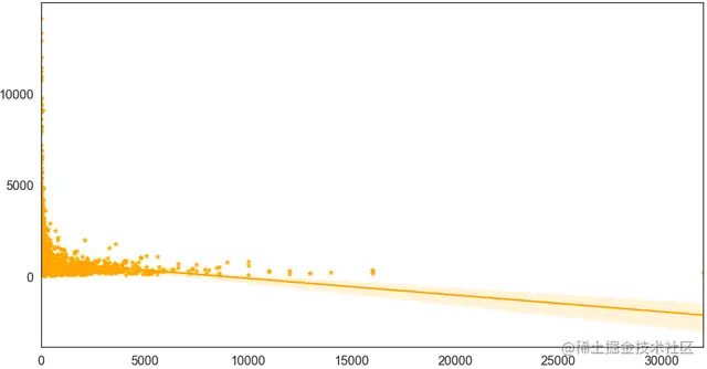 sns.regplot(x='评论人数',y='商品价格',data=df,color='orange',marker='*')