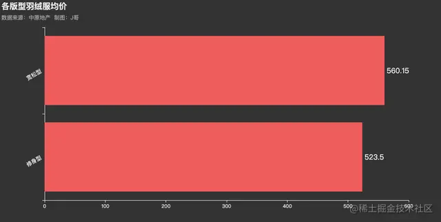 .set_global_opts(title_opts=opts.TitleOpts(title="各版型羽绒服均价",subtitle="数据来源:中原地产 \t制图:J哥",pos_left = 'left'),