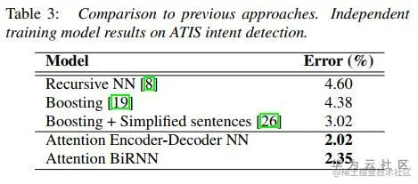 表3显示了文章提出的意图模型和先前方法之间的意图分类错误率。