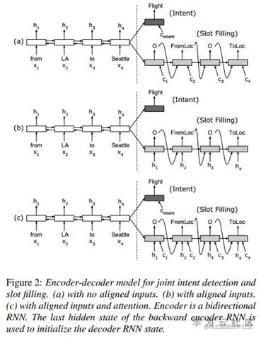 关于意图识别和槽值填充既可以作为两个单独的任务处理,也可以联合处理。由于两个任务之间的存在较大的相关性(意图和槽值之间有相关性),因此联合建模的效果一般会更好。接下来我们将介绍一些相关的论文方法。