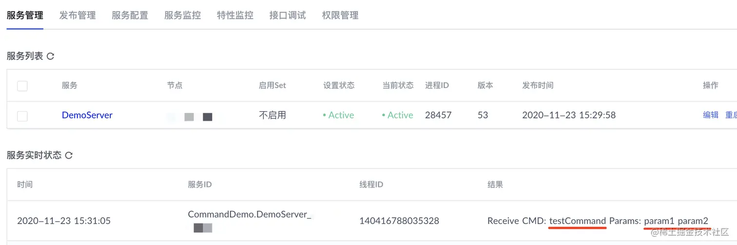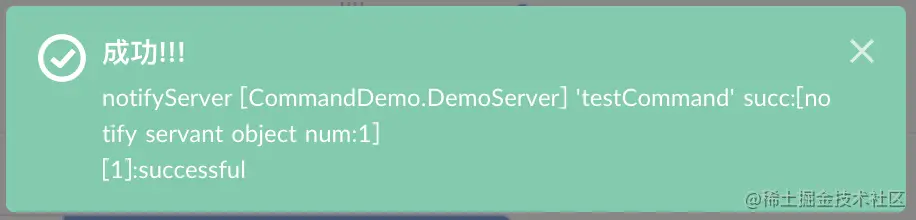 [1]: 后面的 successful 即为前面我们在自定义命令函数中返回的 result 的值,会显示在提示框中。然后我们刷新服务的实时状态,会出现一条服务状态信息 ,如下图