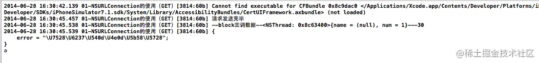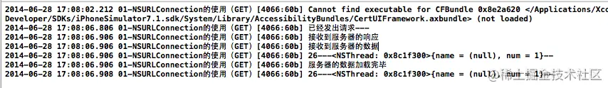 (4)NSURLConnection:负责发送请求,建立客户端和服务器的连接。发送NSURLRequest的数据给服务器,并收集来自服务器的响应数据