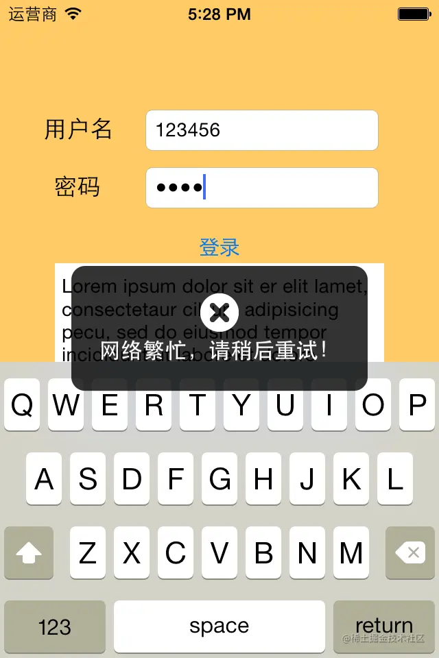 [MBProgressHUD showError:@"网络繁忙,请稍后重试!"];
