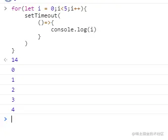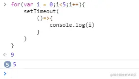 因为for循环执行的时候是当前任务,setTimeout是过一会再执行,所以for循环会全部执行完毕后,才会执行setTimeout。哪怕循环一万次!