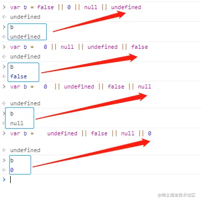 var b = undefined || false || null || 0