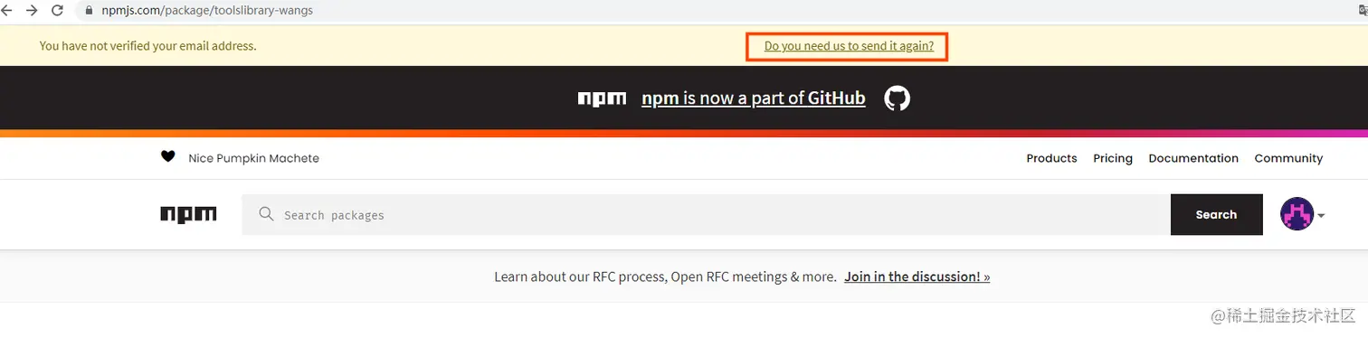 1.注册一个npm账号( www.npmjs.com/signup 前往NPM官网进行注册),并通过邮箱验证
