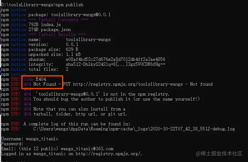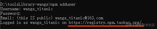 (1)npm adduser 或 npm login 执行命令,用最初注册的账号登录npm