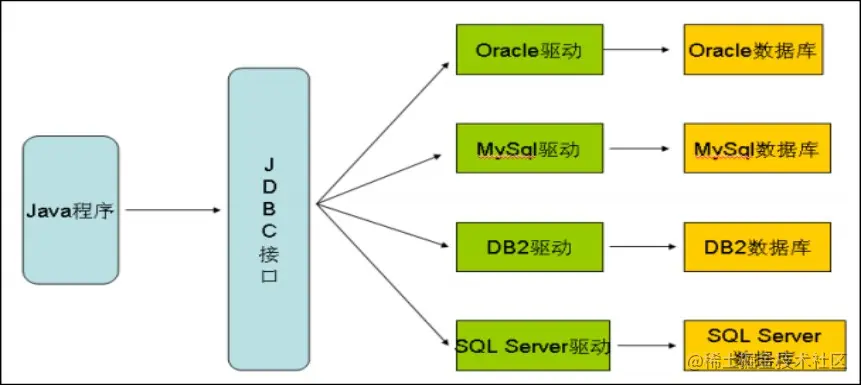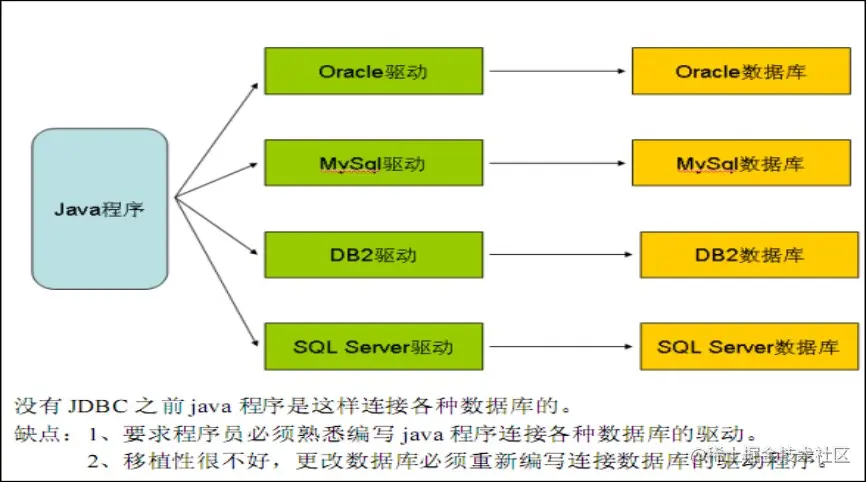 - JDBC对Java程序员而言是API,对实现与数据库连接的服务提供商而言是接口模型,作为API,JDBC为程序开发提供标准的接口,并为数据库厂商及第三方中间件厂商实现与数据库的连接提供了标准方法。