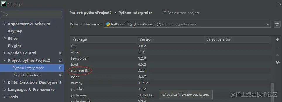 File->settings->Project: 你的项目名 ->Python Interpreter