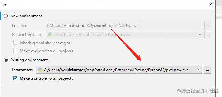 找到设置 project interpreter ,添加pythonw.exe 解释器即可