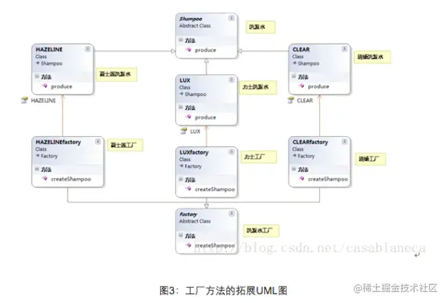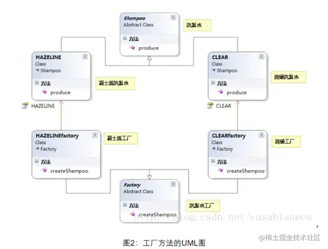 工厂方法使用OOP的多态性,将工厂和产品都抽象出一个基类,在基类中定义统一的接口,然后在具体的工厂中创建具体的产品。工厂方法的生活场景,联合利华要生产“夏士莲”和“清扬”两款洗发水,它会建一个生产“夏士莲”的工厂和一个生产“清扬”的工厂。