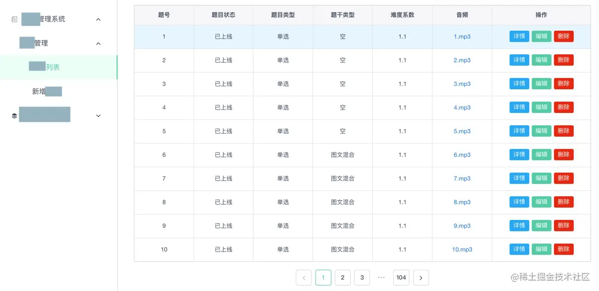 表格:columns:表头数据data:数据分页:total:分页显示多少条数据page-size:每页显示多少条数据on-change:改变页码回调,返回值:当前页码on-page-size-change:切换每页条数时回调,返回值:每页的数据条数JS: